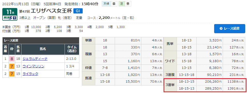 今年も荒れたエリザベス女王杯の結果はいかがでしたか?