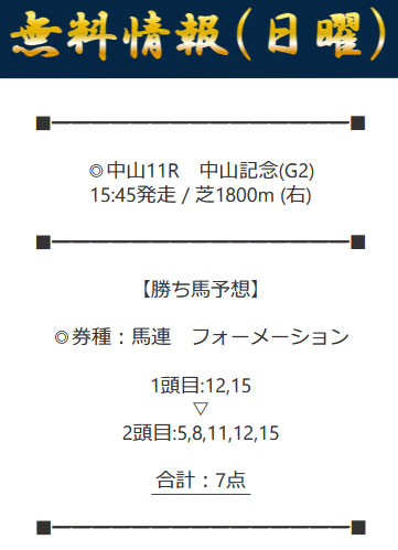 無料とはいえ全くの適当情報であり、こんな予想で馬券を購入するだけ損である!