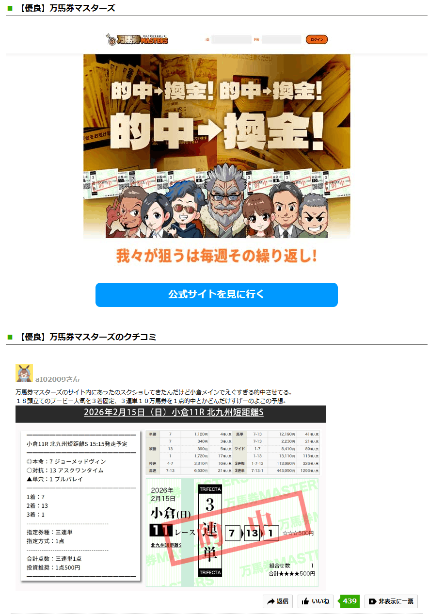 会員様から届いた「2月15日(日)」共同通信杯・京都記念、重賞裏開催となった「小倉メイン」北九州短距離ステークスを押さえ不要の3連単1点予想で的中に導いた驚きの精度の競馬予想サイトをご紹介!