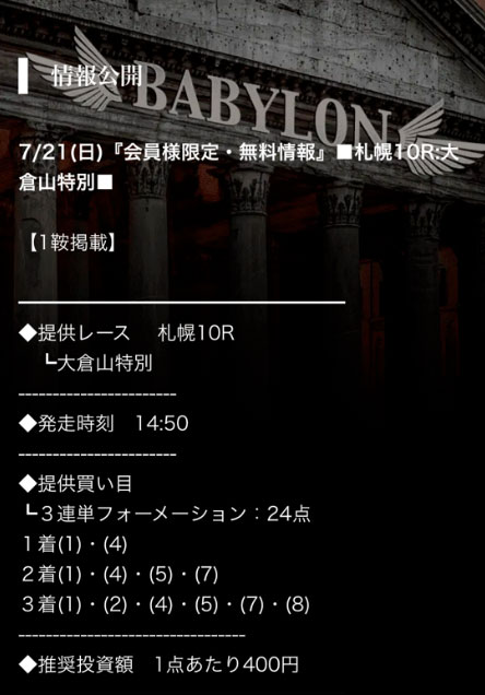 今回【BABYLON】の情報に2日間参加してみましたが、両日とも残念ながら不的中という結果になり、-19,200円という悲しい結果になりました。