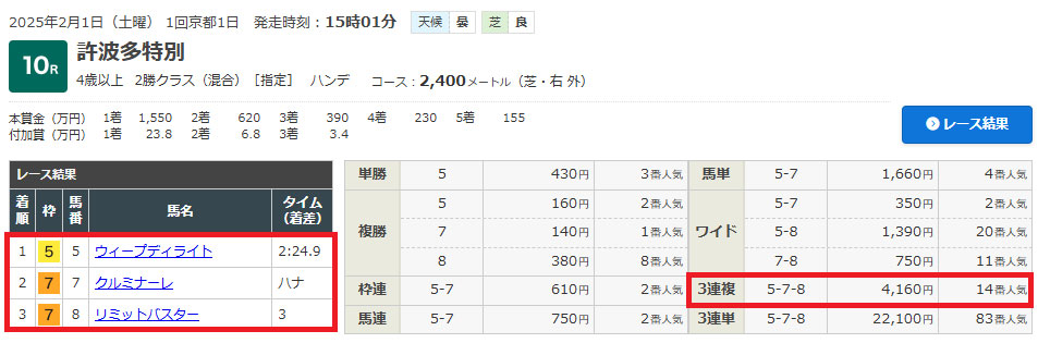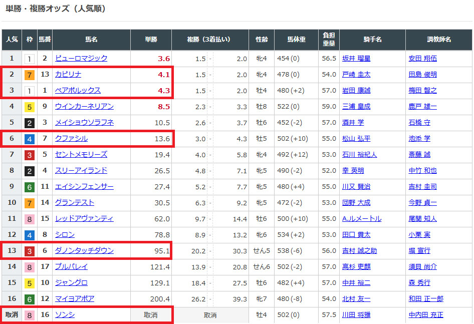 もし馬連、馬単、ワイドで買っていてもトリガミでしたね。