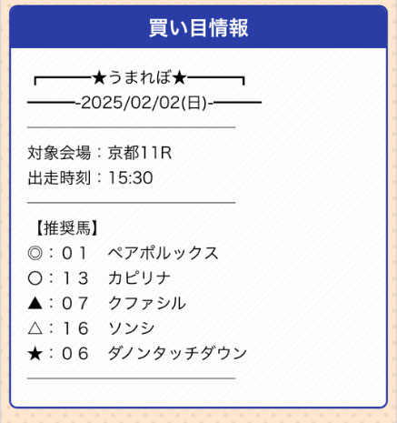 絶対的自信を誇る予想で少点数になってしまいましたが、重賞的中に導いてもらいたいですね。
