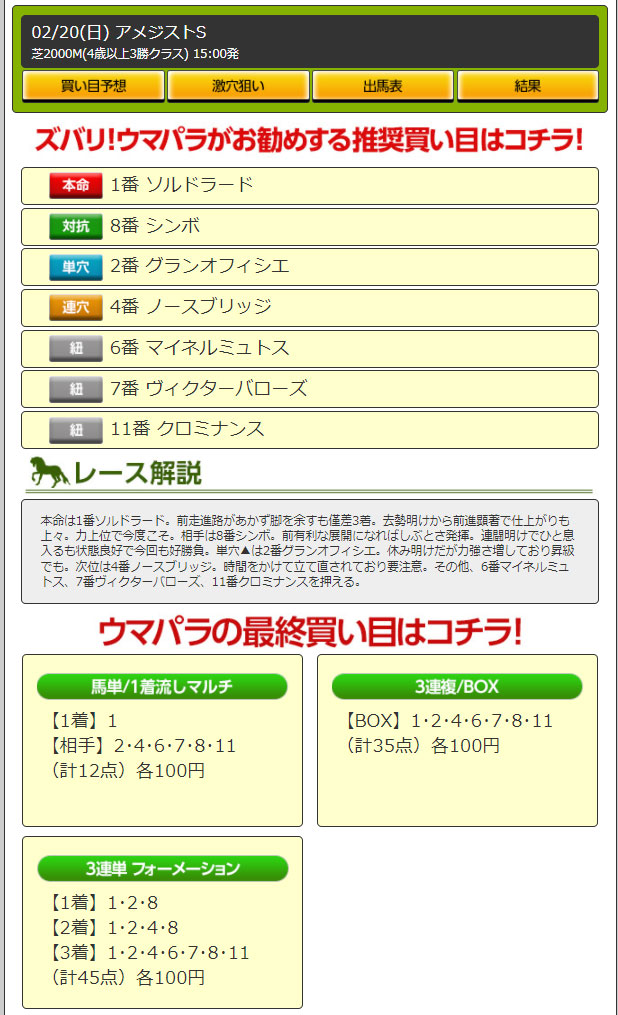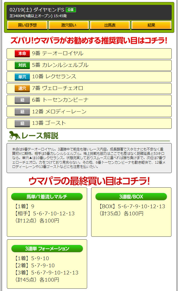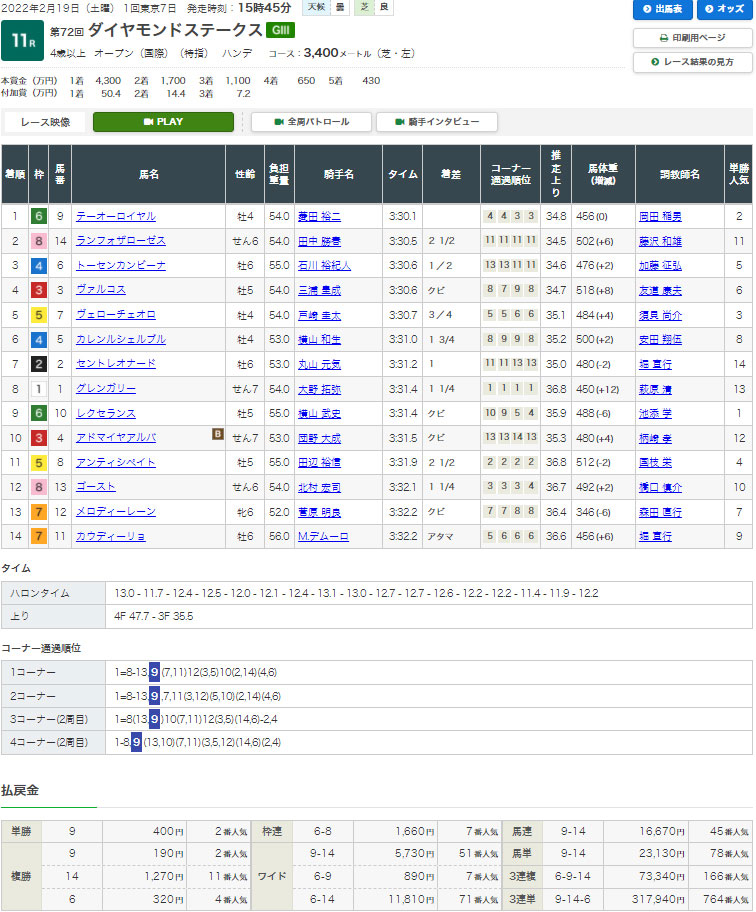 【検証レース:2/19 東京11R GⅢダイヤモンドステークス】