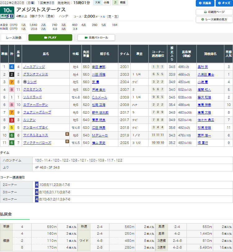 【検証レース:2/20 東京10R アメジストステークス】