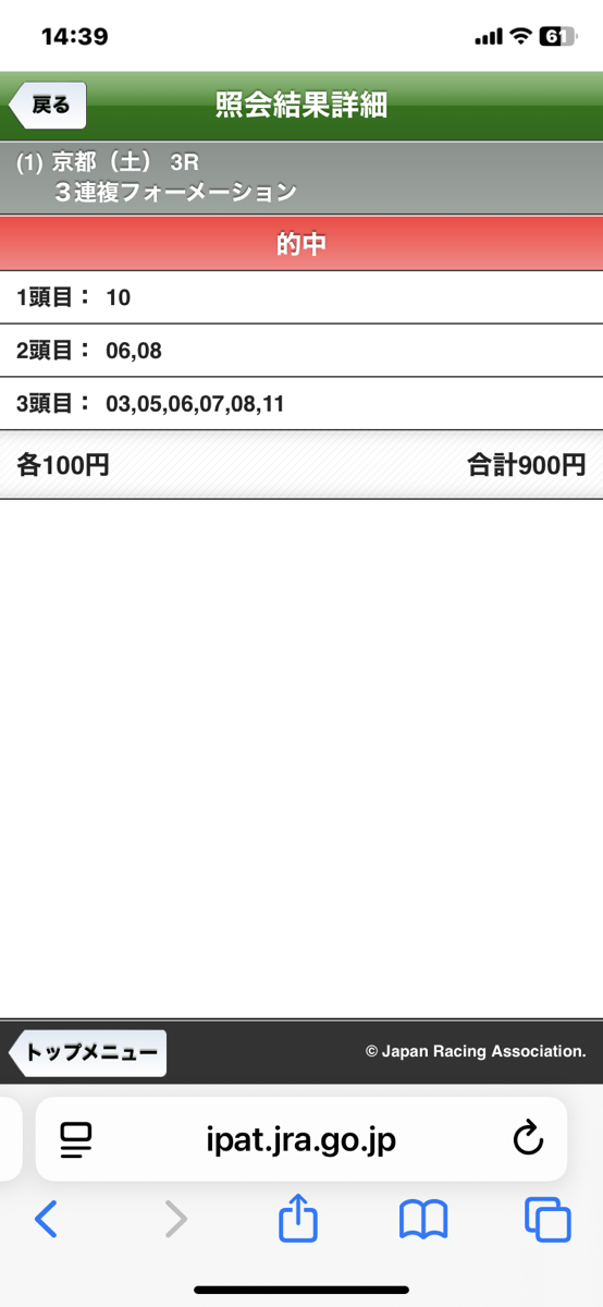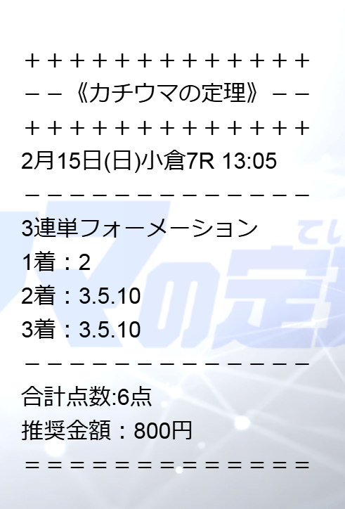 過去にも利用して的中を貰えて、お金にも余裕ができて安心してレースを見ていられました。 今回もありがとうございます、的中おめでとう!の結果でした。
