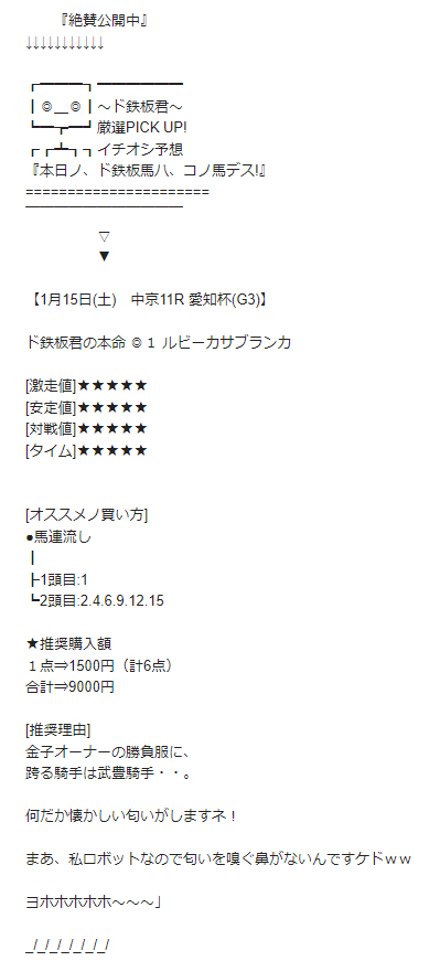 的中結果を引用してますが1月幸先良く的中が得られました。