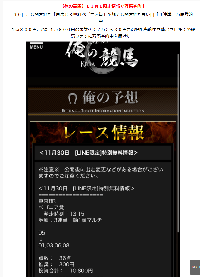 俺の競馬ってサイトは知っていたけど、俺の競馬内にLINE限定無料情報があったのは知らなかった…
