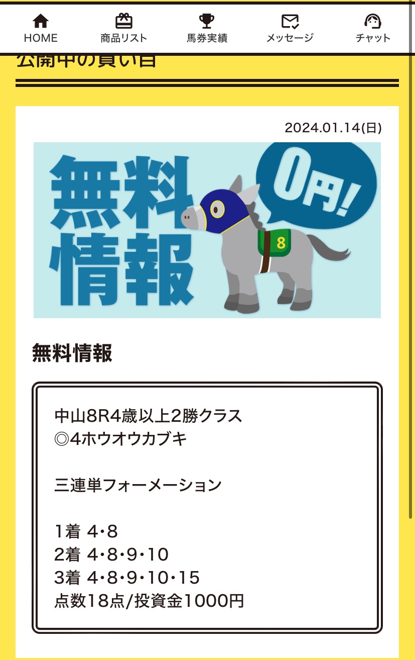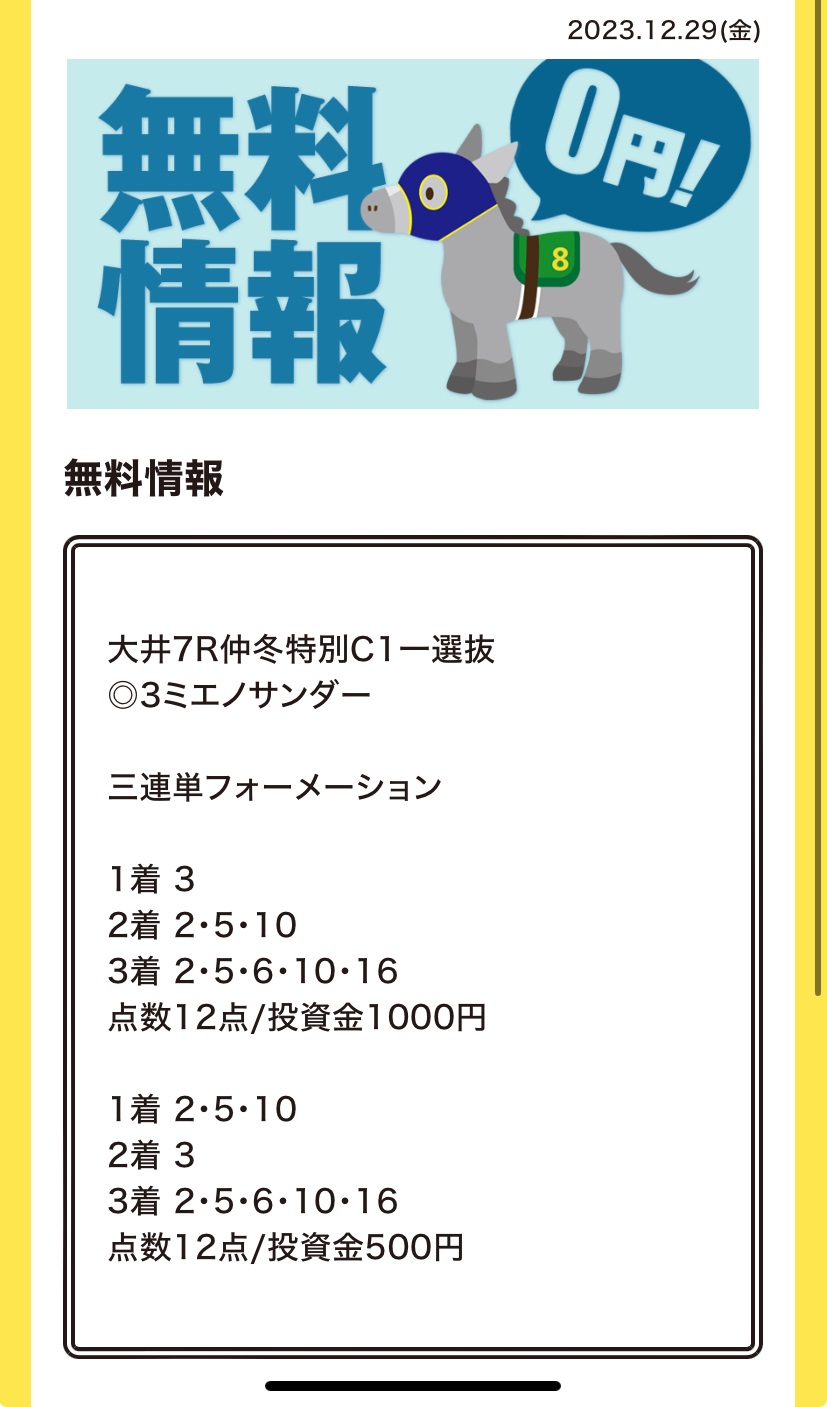 かすりもしない予想をありがとうございます もったいないことしたな 普通にうまいもん食いに行けばよかった