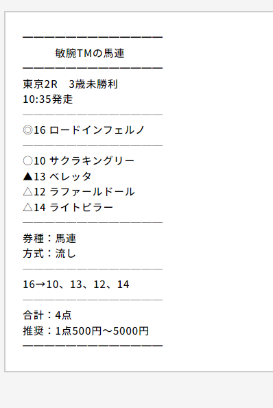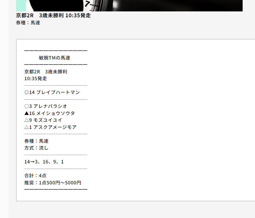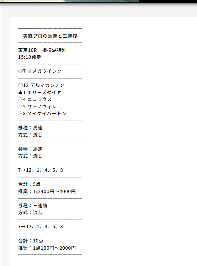 少点数買い目のご提供!